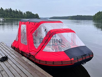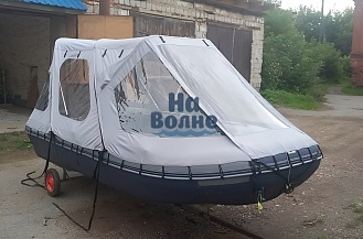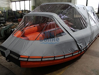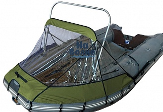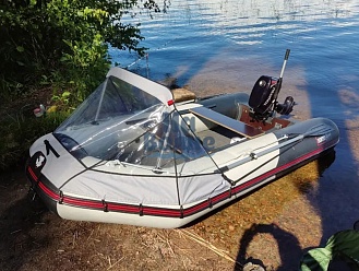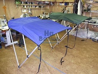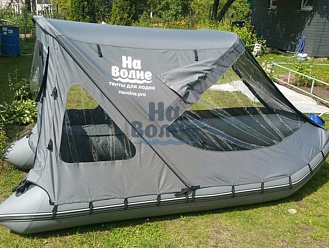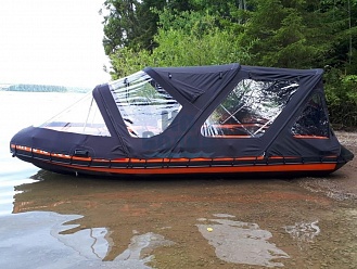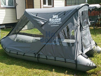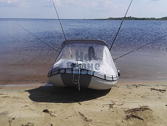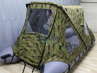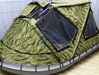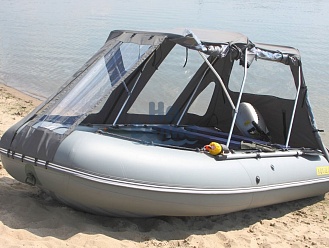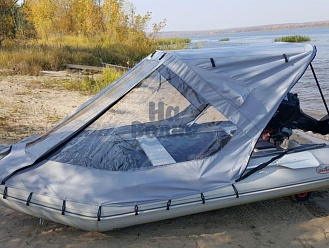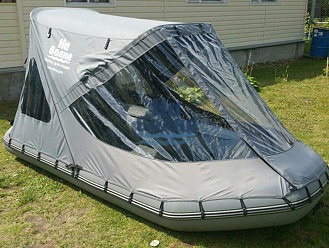 Тент представляет собой крышу (козырек) специального кроя, сшитый из прочной ткани и натягивающийся над кокпитом для защиты пассажиров и вещей в лодке от прямых солнечных лучей и дождя