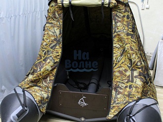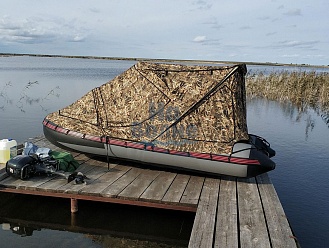Полноценный ходовой тент на основе комбинированного тента и тента трансформера. Особенностью является наличие люка-бойницы в крыше для охоты из лодки